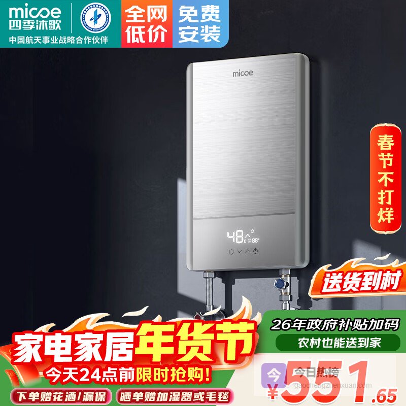 四季沐歌(MICOE)电热水器即热式 家用快热洗澡淋浴恒温免储水超薄过水速热变频智能烧水加热器 上门安装 DSK-H70-MS01【7000W变频】¥