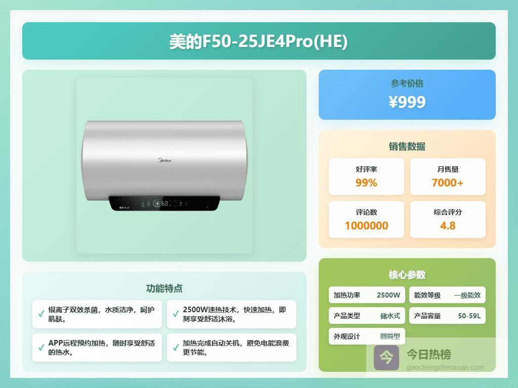 储水式热水器哪个品牌好,品牌热销榜前几名推荐一、美的① 智能省电:这款美的电热水器能帮你省不少电,自动调节加热时间和温度,让用电更高效,不会浪费,凑巧还挺省钱。