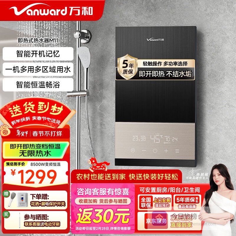 万和(Vanward)即热式变频热水器速热电热水器家用恒温洗澡免储水加热器淋浴器过水热热水器¥