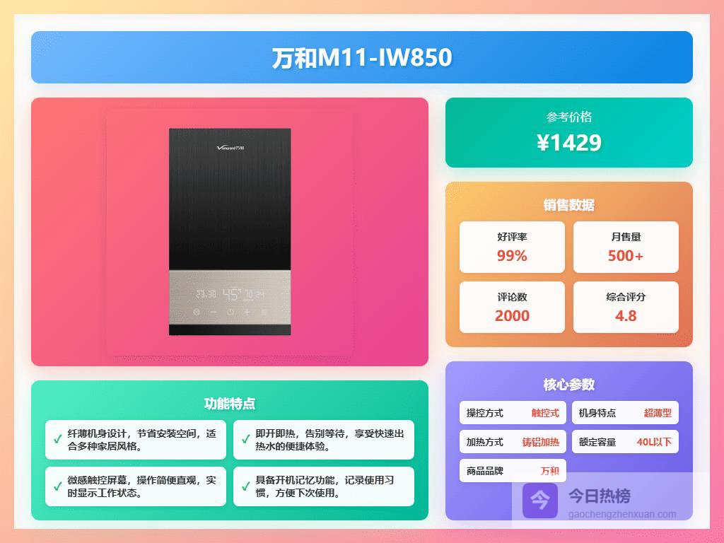 四、万和① 即热快:这款电热水器实现开机即热,不用等太久就能用上热水,特别适合赶时间或突发状况,舒服又省事。
