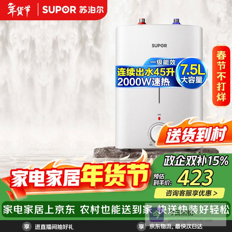 苏泊尔(SUPOR)8年质保[国家补贴]一级能效 7.5L电热水器 小厨宝速热 2000W储水式热水宝 E07-UK17¥