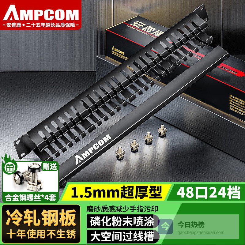 【京东自营】安普康理线架24档48口加厚机柜网线理线架工程级网络理线器19英寸金属机架式线缆管理器A¥