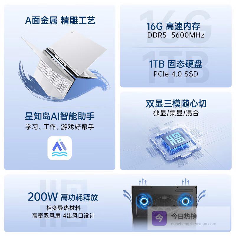 多任务无压力:16GB内存及1TB固态硬盘配置,为复杂的多任务处理和数据存取提供强大支持,效率倍增。