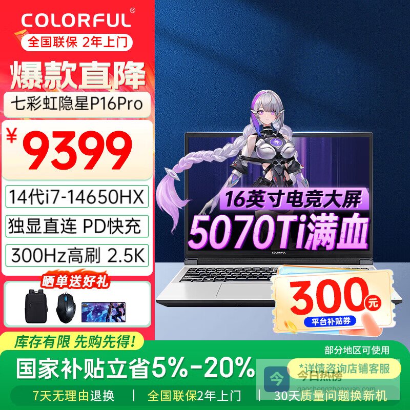 【京东自营】七彩虹隐星P16Pro14代酷睿i716英寸游戏笔记本电脑¥