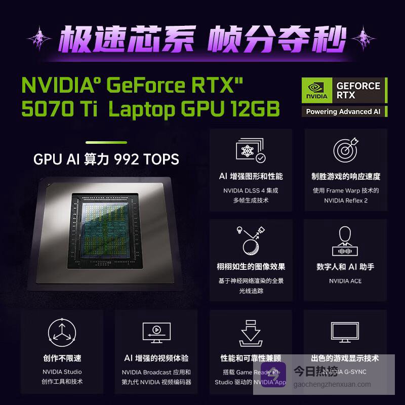 核心优势:强劲的性能与极致的视觉体验相结合,满足高强度计算需求,无论是游戏还是视频剪辑都游刃有余。