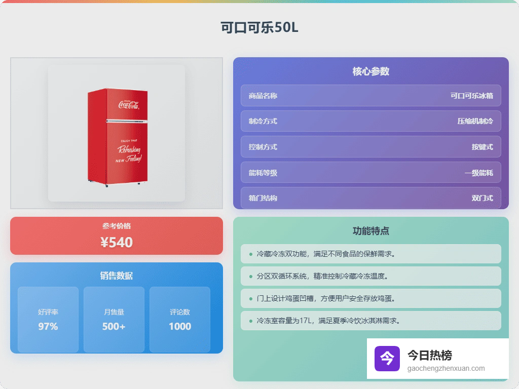 可口可乐车载冰箱质量怎么样,推荐好用实惠性价比高型号1、可口可乐68L双开门
