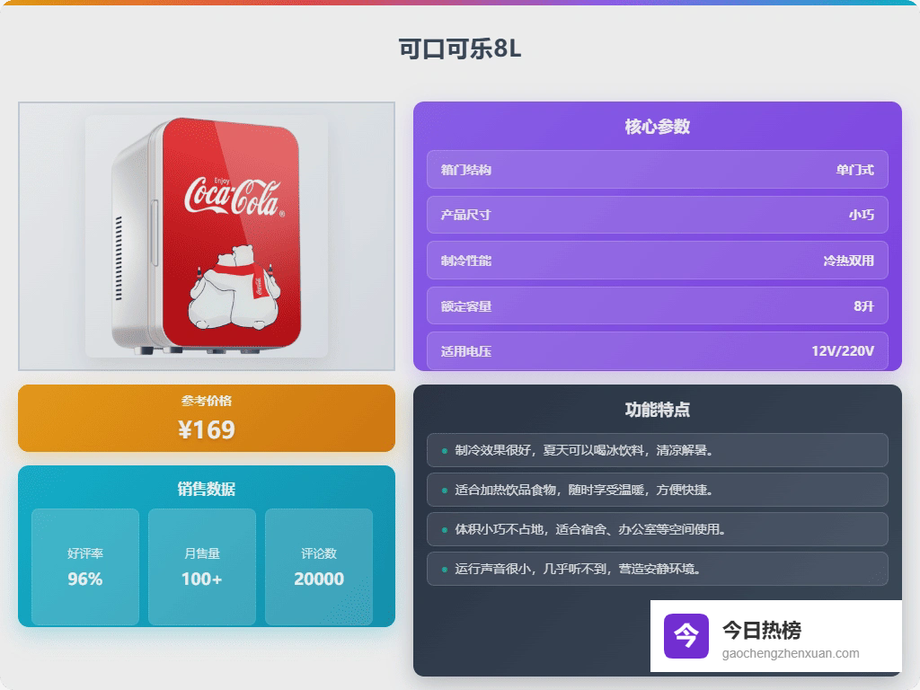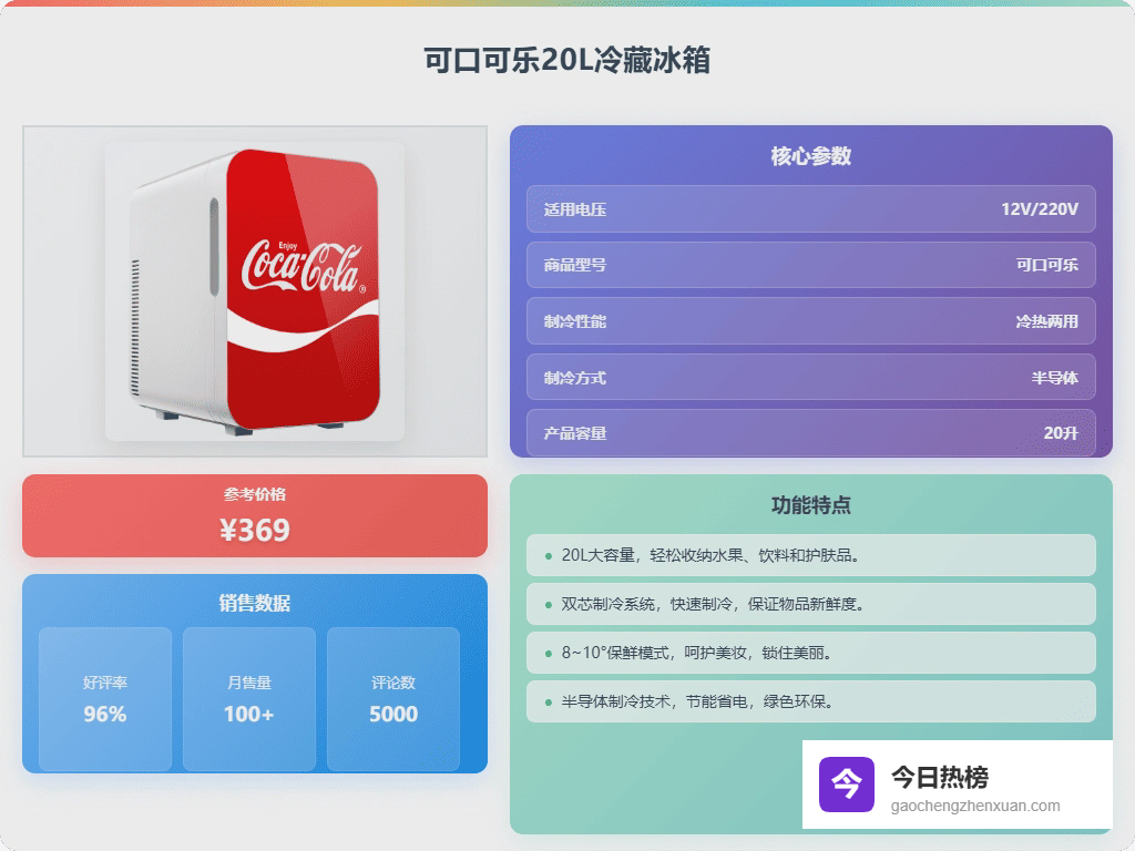 1️⃣ 多场景使用:这款可口可乐TJ-8车载冰箱支持家用和车载两种场景,电压范围广泛,12V和220V都能用,还挺方便的。无论是在宿舍还是在车上,都可以轻松带着走,不用担心电源问题。