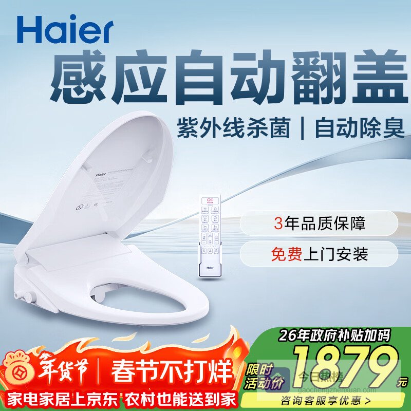 海尔(Haier)智能马桶盖全功能尊享系列 双感应自动翻盖款遥控自动除臭 X7-R90¥