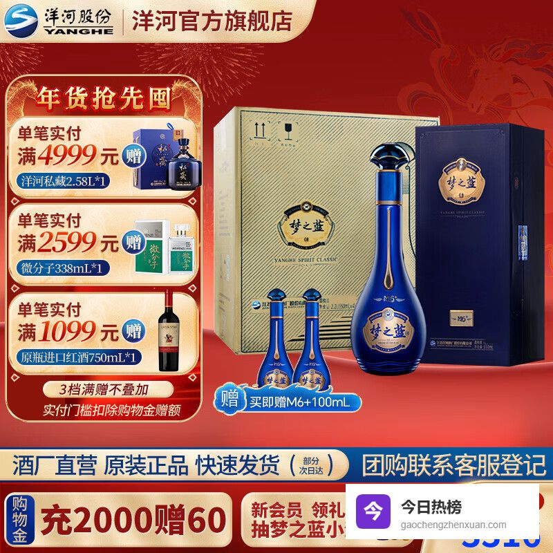 梦之蓝M6+ 洋河梦之蓝M6+ 蓝色经典 绵柔白酒 52度 550mL 4盒 整箱装¥