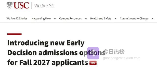 从2027-2028学年(即2027年秋季入学申请)开始,南加州大学将为绝大多数本科项目(部分艺术学院除外)新增 "ED" 申请通道。