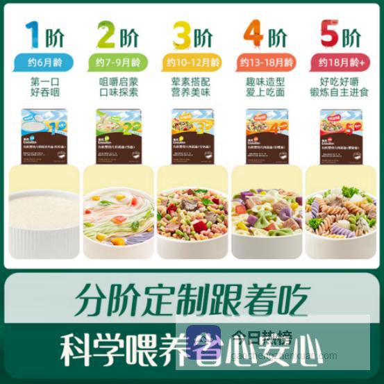 品牌定位:主张“阶段式精准喂养”的母婴零辅食品牌,兼顾常规与低敏系列,性价比高。