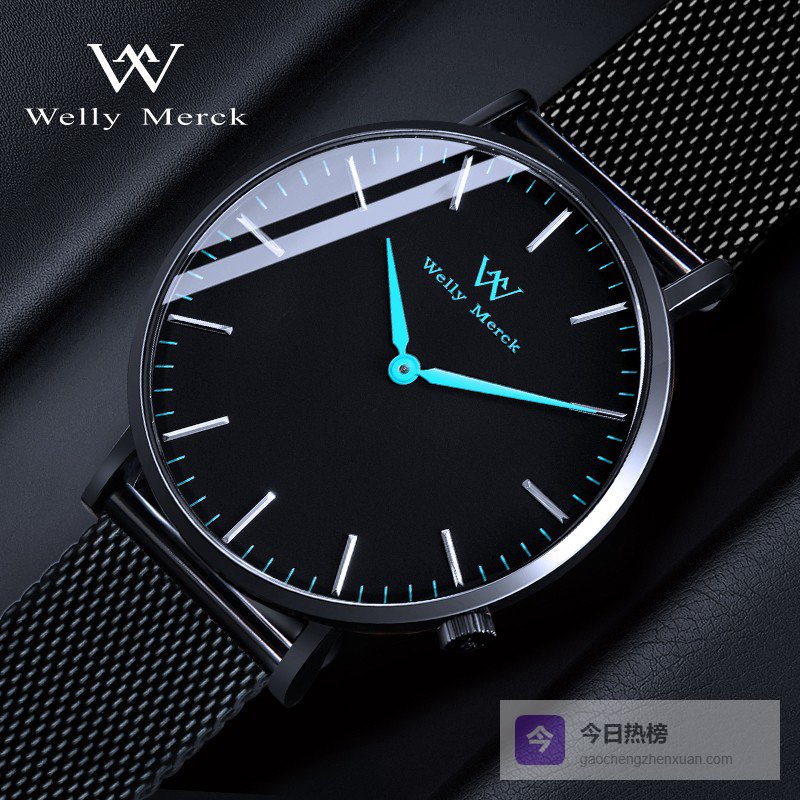 第九款:威利默克超薄男士石英手表 黑色网带