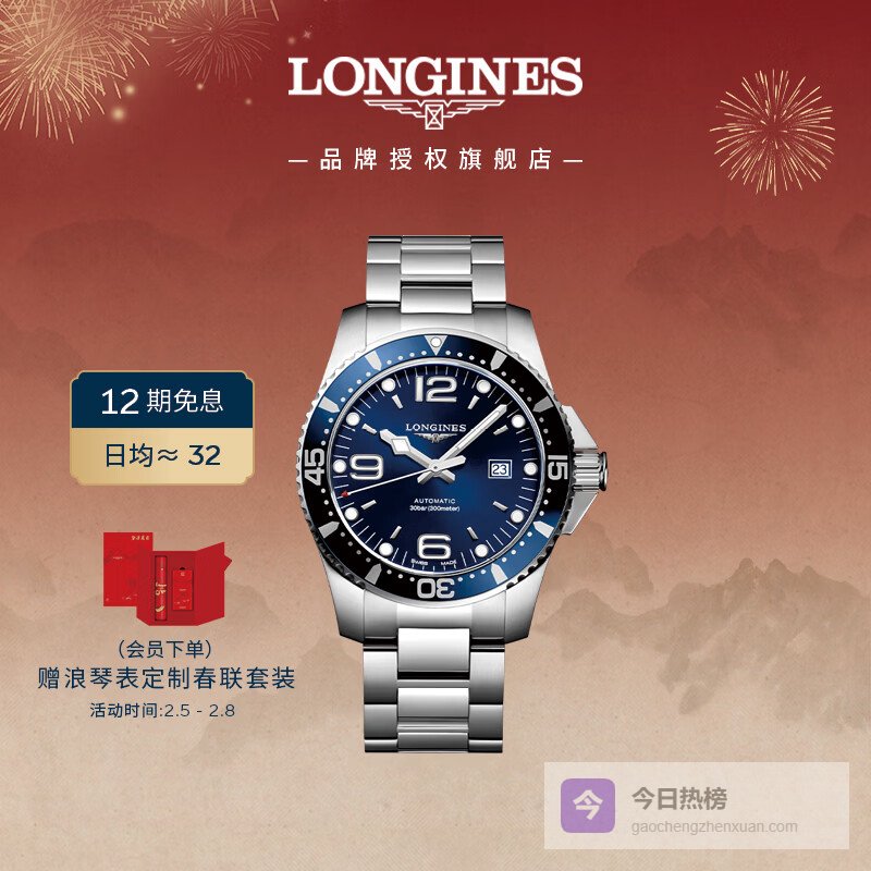 【京东自营】浪琴瑞士手表康卡斯潜水系列男士钢带机械表情人节礼物L38414966¥