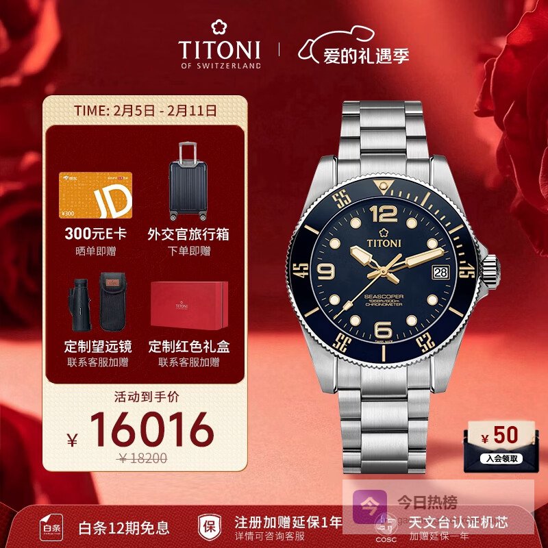 【京东自营】梅花瑞士手表男士机械表海洋探索系列600M自动潜水腕表天文台认证礼物¥