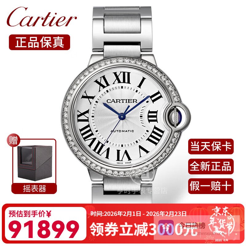 【品牌专营】卡地亚瑞士手表蓝气球系列女士腕表自动机械表气质女表【情人节礼物】W4BB0024钢带镶钻¥