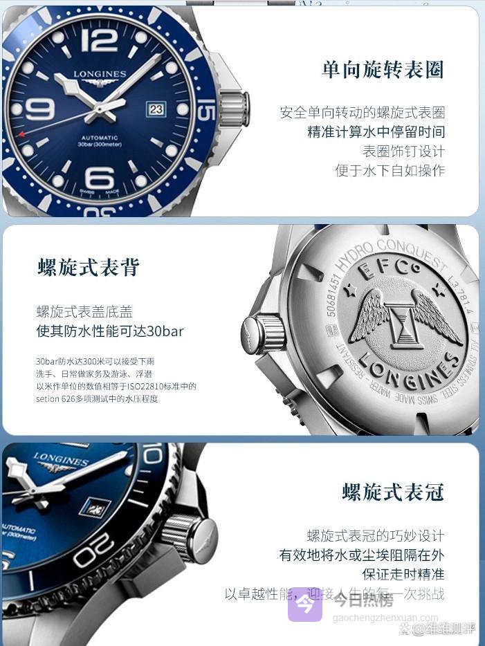 专业潜水功能:配备旋转陶瓷表圈和深潜排气阀,确保潜水时内外压力平衡,为潜水员提供绝佳保障。