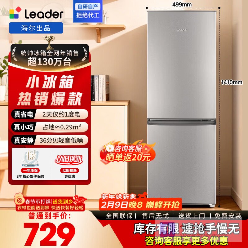 统帅(Leader)海尔冰箱出品180L/218L两门三门小冰箱小户型节能低噪冷冻锁鲜适用出租房宿舍咨询多台更优惠 小巧不占地|低温自动补偿|180L两门¥