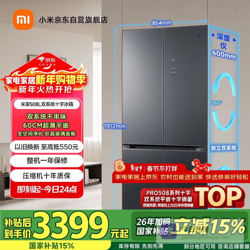 米家小米Pro508L十字门冰箱一级变频双系统双循环超薄嵌入式零嵌京东自营BCD-508WTGBI国家补贴 ¥