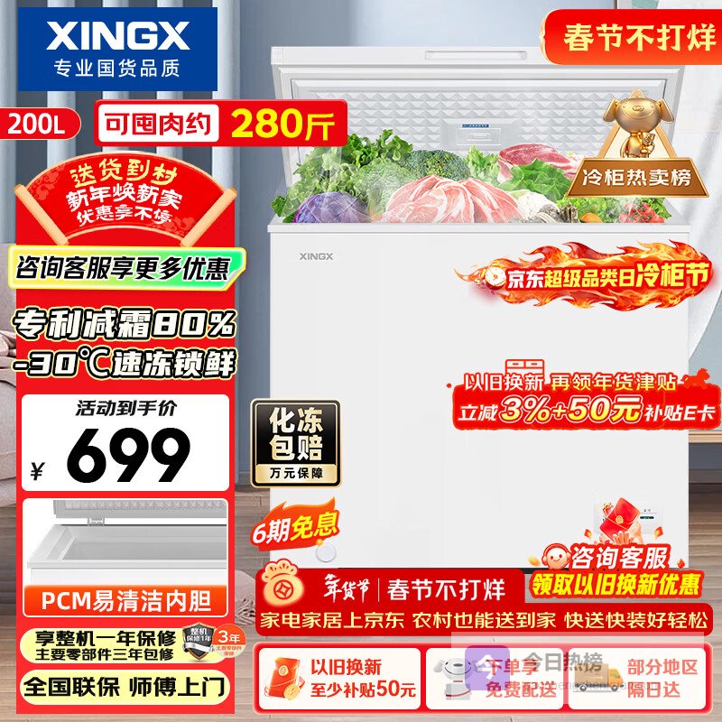 1、强力冷冻,锁住新鲜:这款星星BD/BC-200QJ冰箱,冷冻力达到了7KG/12H,相当于一天能冻透28斤肉!这样的冷冻速度,让食材在短时间内迅速冷冻,锁住营养和新鲜,再也不用担心食材变质啦。
