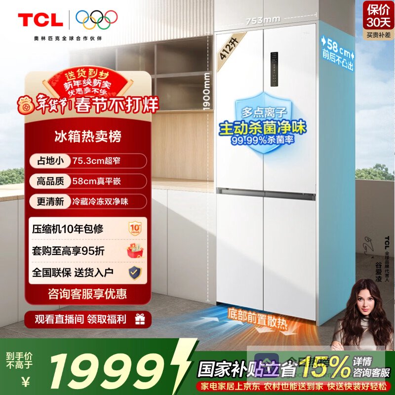 推荐第10款:TCLR412T7-UQ四开门冰箱