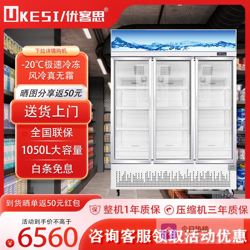 品牌热度:优客思1.6m三门风冷展示柜在展示型冰箱里受关注,商铺与家庭展示需求兼顾。