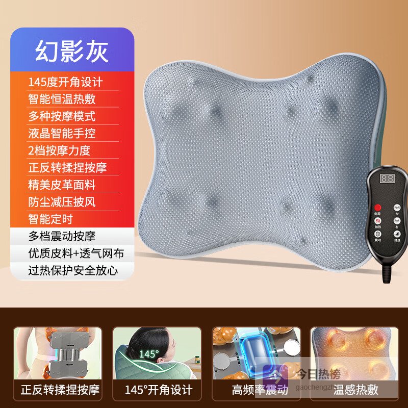 颈椎按摩器腰背部震动多功能腰椎靠垫脖子肩颈揉捏按摩仪 幻影灰(145度开角设计+恒温热敷+多种按摩模式+¥