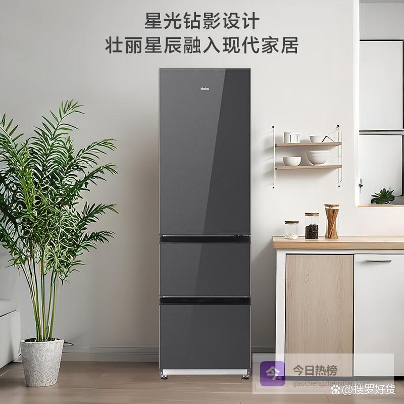第1款:海尔BCD-308WGHD3E7YS这款冰箱总容量有308升,比一般冰箱能装。内部设计也挺合理,分了冷藏、冷冻和变温三个大区,而且每个区又细分了,像什么调味酱料区、水果专储区都有,东西放进去不会乱,找起来方便。实测了一下,双层大抽屉拉取很顺滑,放取东西确实省力。