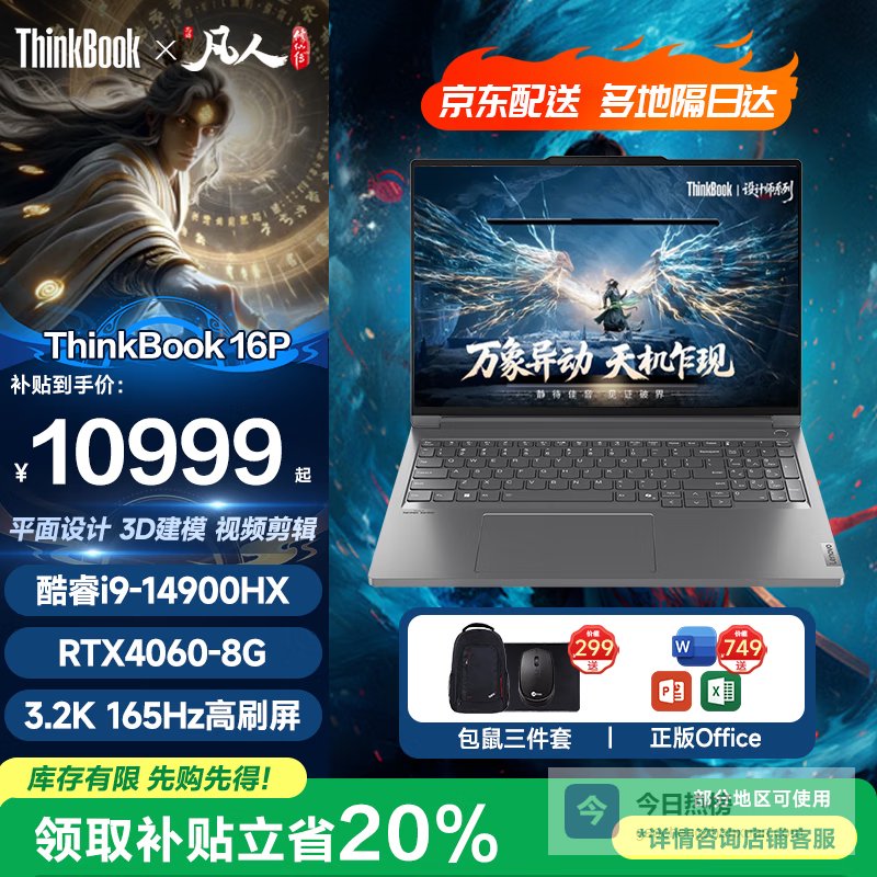 ThinkPad联想ThinkBook16p 2025 补贴20% 设计师电竞游戏笔记本电脑 AI元启版满血5060 旗舰锐龙 I9-14900HX丨RTX4060丨3.2K 64G内存 6TB固态硬盘 升级 RTX满血显卡 超清护眼高刷屏 全新升级¥