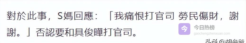 2月10日,S妈也直言不讳地回应了这事,她就一句话:“我讨厌打官司,白费劲,还花钱,谢谢。”