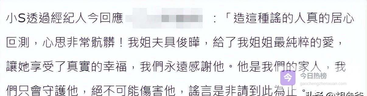 小 S 这边的态度更加强硬,直接通过经纪人怒怼造谣者: