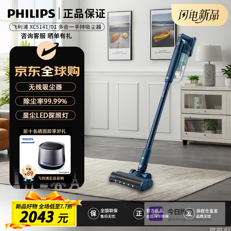 飞利浦(PHILIPS)家用大吸力无线吸尘器除螨仪多功能 吸拖一体60分钟长续航 吸尘器XC5141/01¥