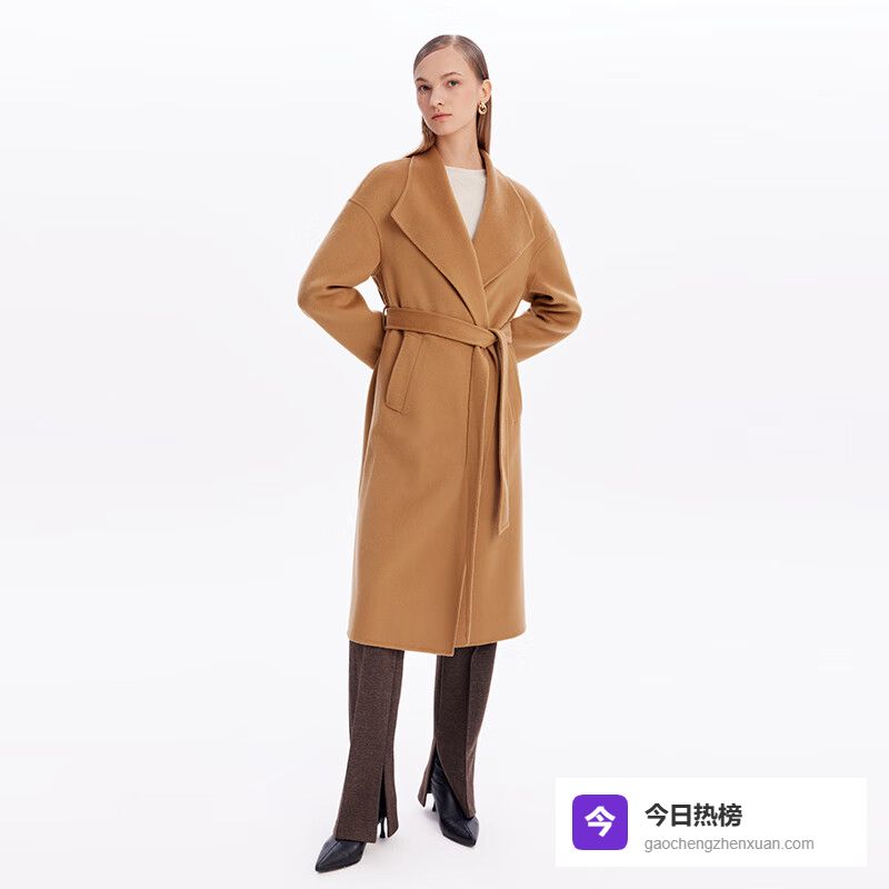 歌莉娅【高智大衣】双面呢羊绒高端流行法式中长款外套1ANL6E280 72Y浅啡 L (165) -¥