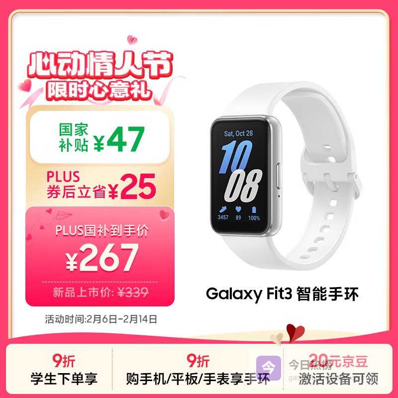 【京东自营】三星Samsung【国家补贴】Fit3智能手环/运动手环1.6英寸AMOLED大屏星系银¥