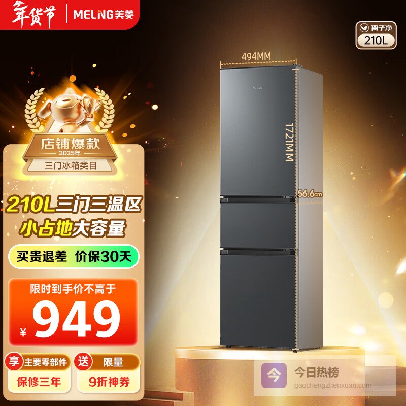 1、美菱BCD-210L3CR2X这款冰箱配备了变频节能技术,能有效降低能耗,减少电费支出,让日常使用更加经济实惠。它的三门三温设计实现冷藏、软冷冻和冷冻区的独立存储,有效避免食物串味,同时还能根据食材需求调节温度。总容量210升,空间合理,特别适合小户型家庭或租房使用。