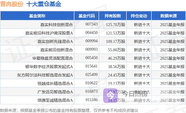 重仓普冉股份的前十大公募基金请见下表:
