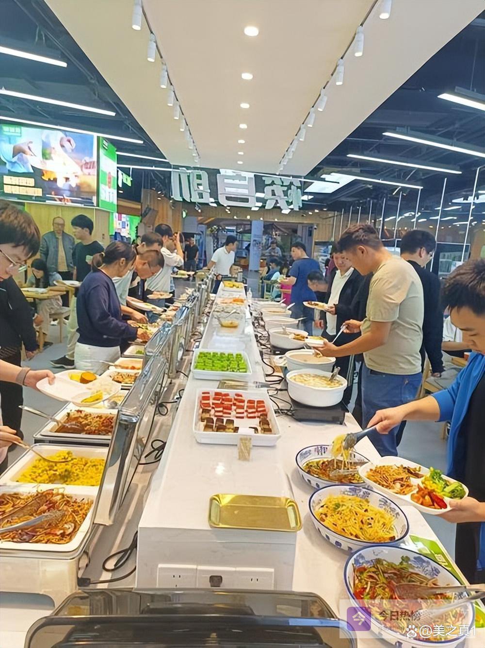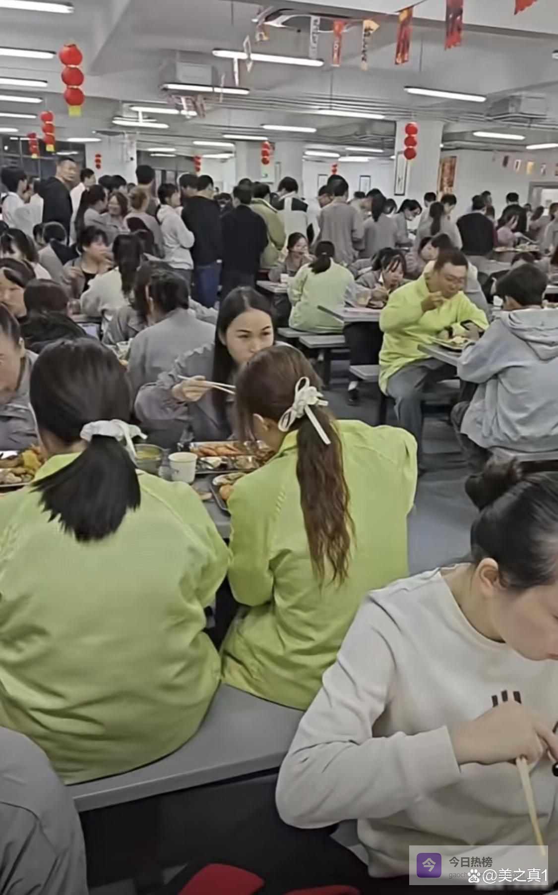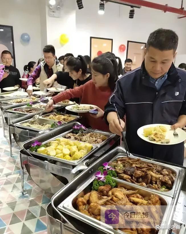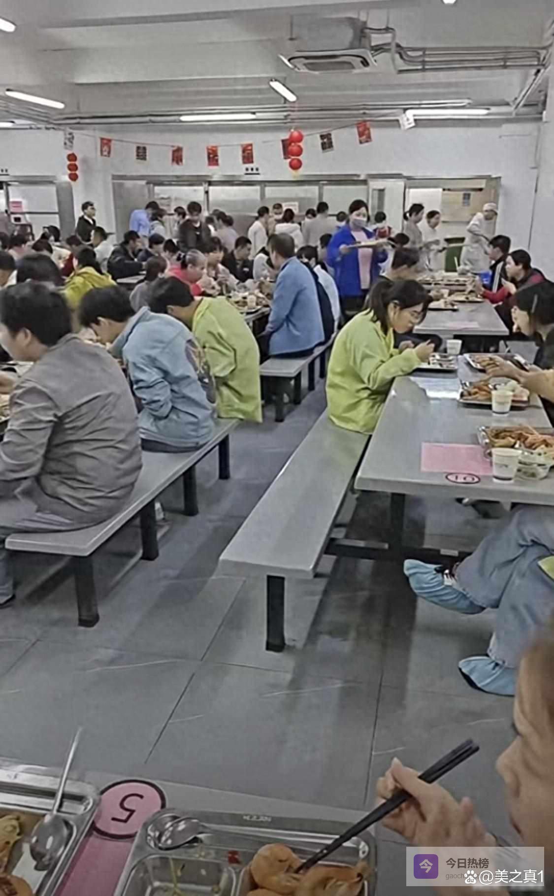 从网上流传的现场视频和照片能看出来,食堂里摆了几十张桌子,自助区分了热菜、凉菜、主食、水果,一共二十多种菜品,全都是普通家常菜,没有任何硬菜,员工们全都拿着餐盘排队取餐,现场看着倒是挺整齐,可不少员工脸上写满了不满,一边打饭一边小声抱怨,这些画面一传开,直接成了大家争论的焦点。