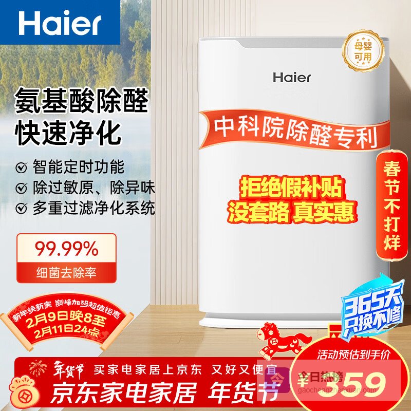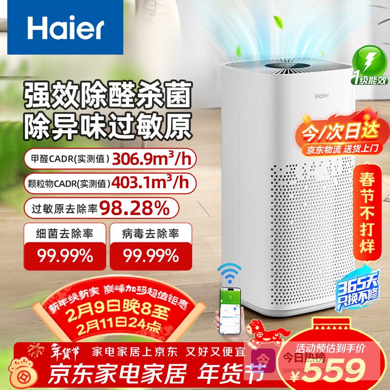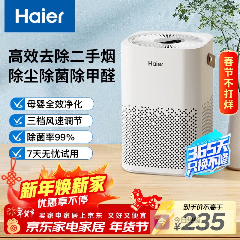 【京东自营】海尔空气净化器室内母婴推荐家用除甲醛除烟味除苯等离子除尘办公室除异味除过敏原杀菌消毒净化¥
