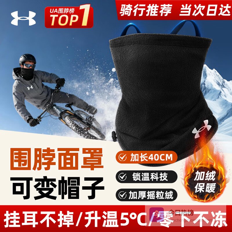 点评:这款UNDER ARMOUR围脖骑行面罩,采用高品质的加厚摇粒绒材质,能给你带来更好的保暖效果,寒冷天气中佩戴舒适又暖和。它可以保护面部、脖子、头部和耳朵,一体式设计,全方位覆盖,抵御寒风,特别适合户外运动或冬天出行。