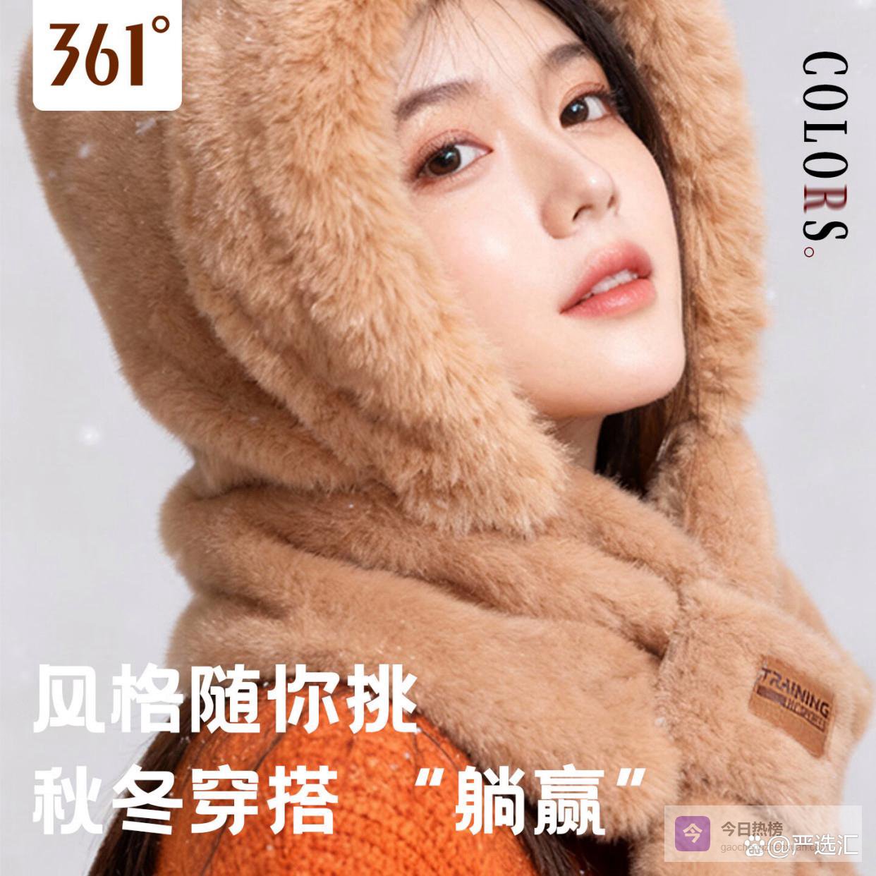 361°围巾女冬季披肩保暖帽女士秋冬女生围脖女友新年礼物骑行保暖冷帽 卡其色-短款【帽子+围脖】¥