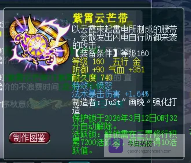 近期,一位玩家鉴定160级装备,喜提“逆天双蓝字”腰带。虽然基础属性平平,但愤怒搭配法暴伤害1.64%的组合堪称顶级,能显著提升触发法术暴击后的面板伤害,是帮战、华山、剑会等PK场景中法系老板的实用之选。