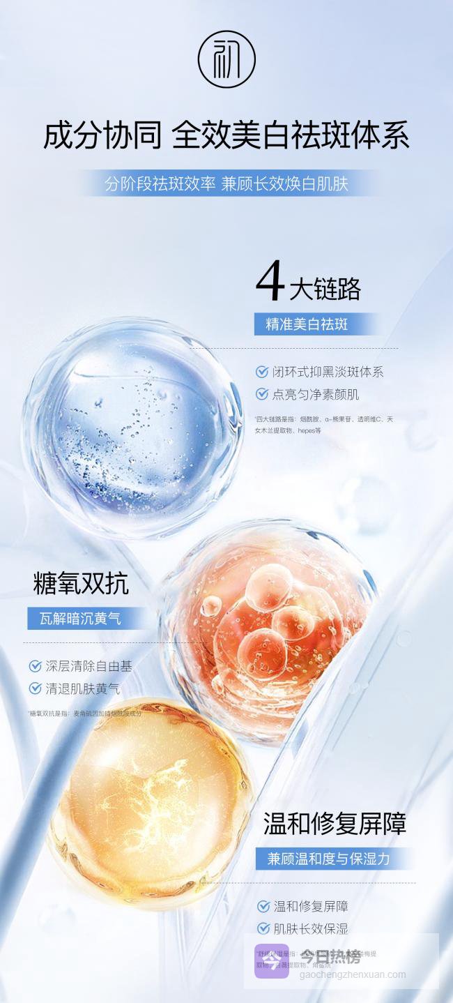 核心成分+功效:四大成分全面狙击黑色素,抗氧舒缓保湿一点不落下,效果就是这么强