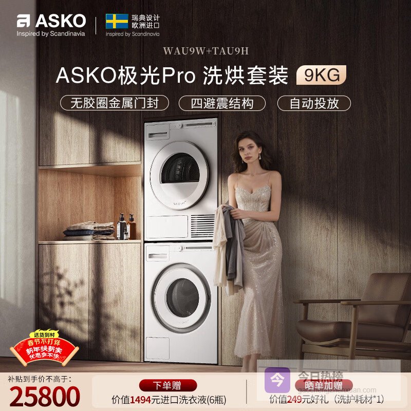 【京东自营】ASKO雅士高极光Pro系列洗烘套装9KG智能投放大容量+多重过滤热泵烘干国家补贴洗衣机¥
