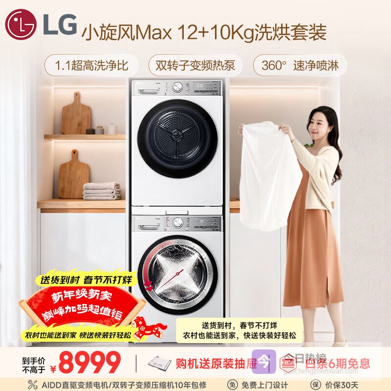 【京东自营】LG小旋风Max洗烘套装12KG滚筒洗衣机+10KG变频热泵烘干机360°速净喷淋FCW¥