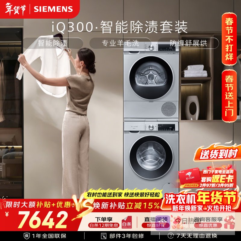 推荐入手:西门子iQ300洗烘套装 10kg 滚筒洗衣机+热泵烘干机
