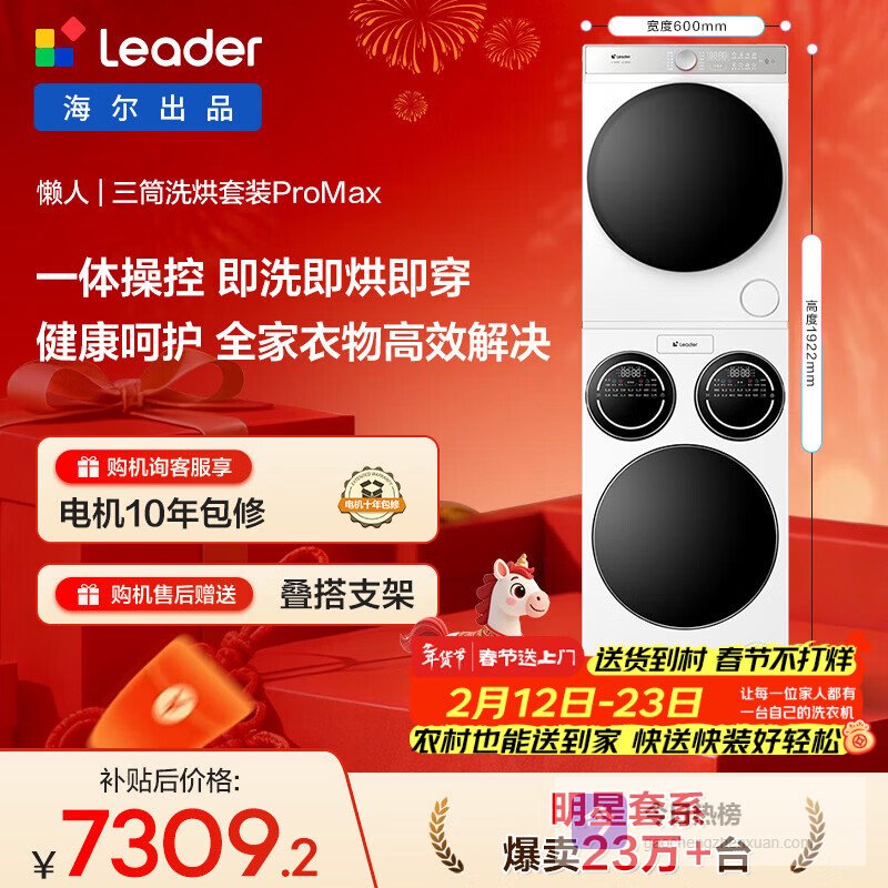 【京东自营】统帅海尔出品懒人三筒洗烘套装ProMax12.5KG热泵内衣裤婴儿全自动滚筒洗衣机家电国¥