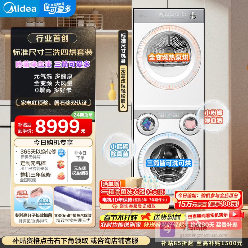 【京东自营】美的可爱多分区洗烘套装11KG三筒滚筒洗衣机全自动洗烘一体+烘干机MD11DDEX+10¥