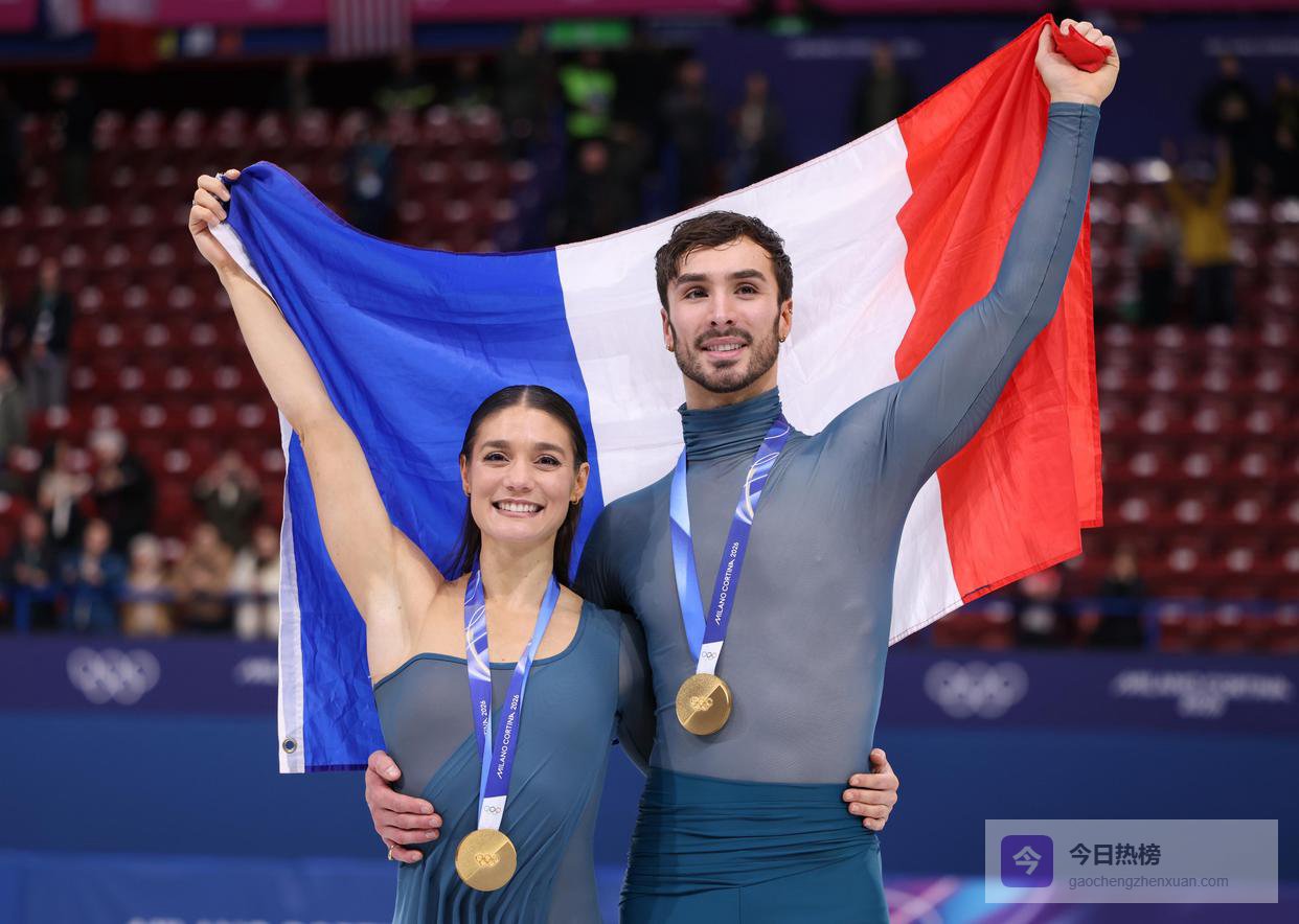 当地时间2月11日,米兰-科尔蒂纳冬奥会花样滑冰项目冰上舞蹈自由舞比赛在意大利米兰举行。法国组合富尼耶·博德里/西泽龙获得冰舞冠军,美国组合乔克/贝茨获得亚军,加拿大组合吉勒斯/波里尔获得季军。