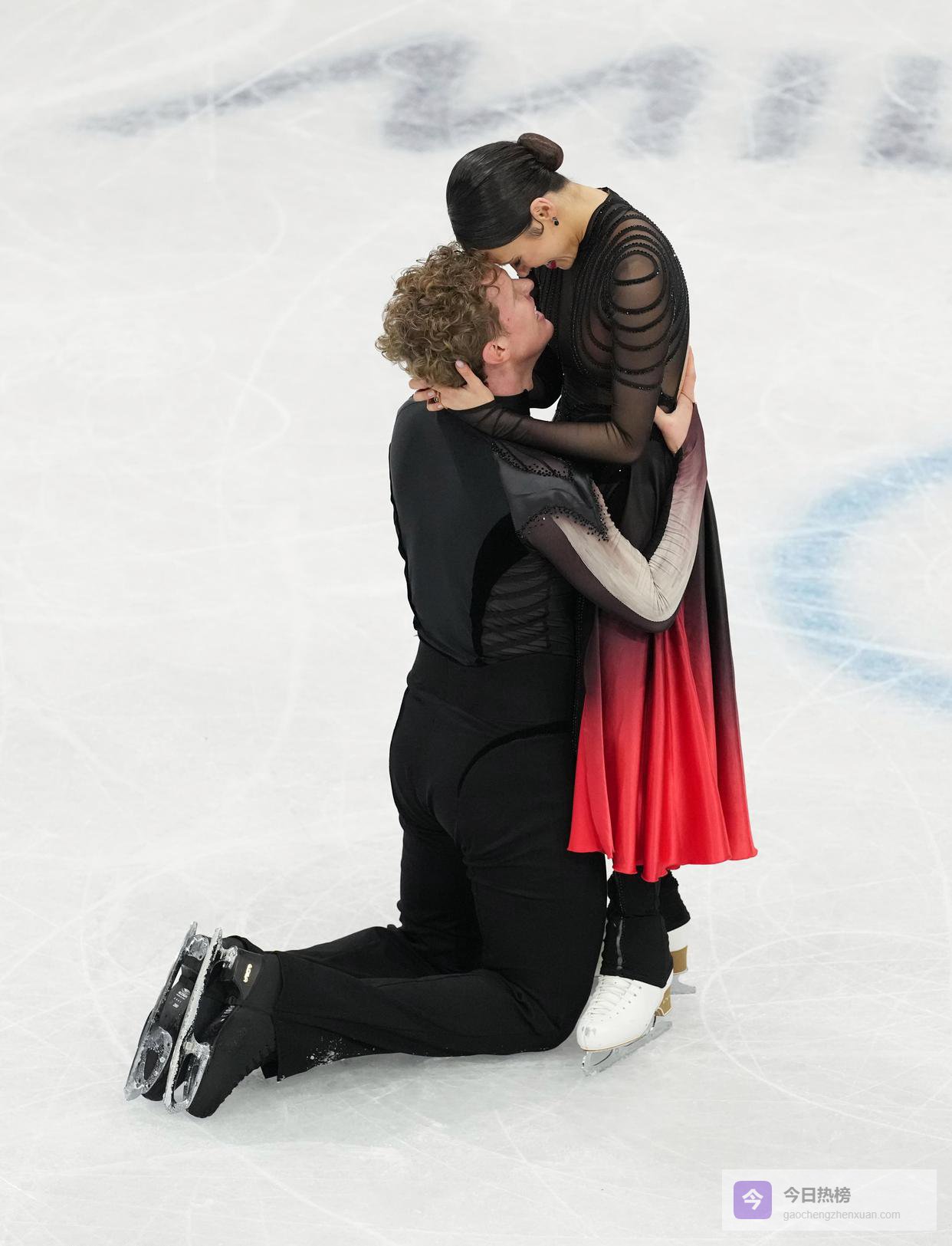 ↑2月11日,加拿大组合吉勒斯/波里尔在自由舞比赛后庆祝。他们获得冰舞季军。新华社记者 陈益宸 摄
