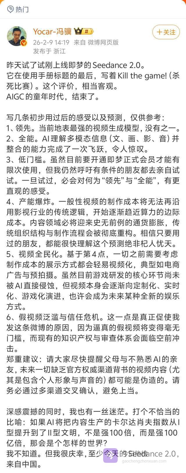 就在Seedance 2.0刷屏的同时,周星驰经纪人陈震宇在社交平台发出一声诘问:“这些属于侵权吗?平台是不是放任不管?”