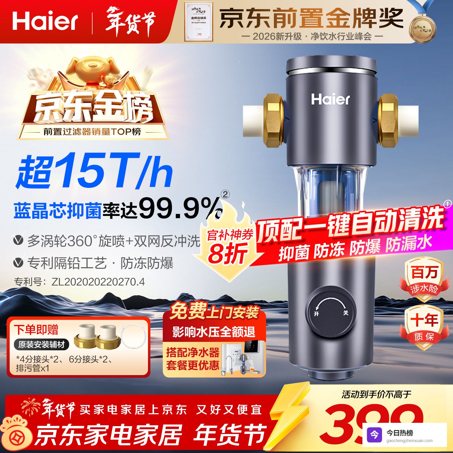 【品牌直营】海尔前置过滤器全屋家用净水器HP-05升级迭代款40微米双网反冲洗大通量管道过滤器全屋家¥